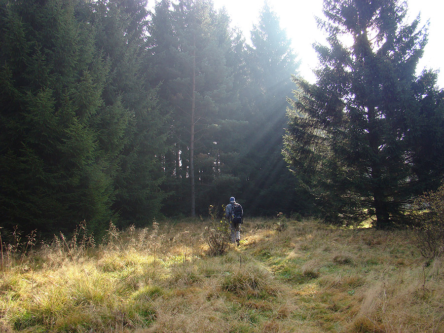 první pohled z roští na areál nejzápadnějšího bodu ČR |