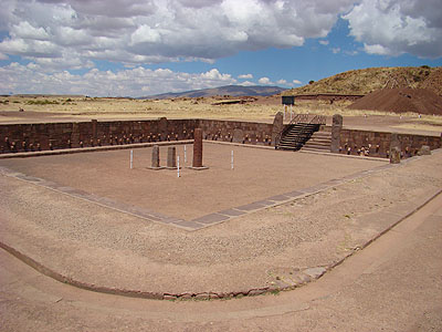 Nejznámějším fragmentem na obřadní plošině Kalasasaya je tato Sluneční brána (Puerta del Sol), která je symbolem Tiahuanaca. Společně s oběma monolity tvoří symetrický trojuhelník. Význam této geometrie zůstává stále nerozluštěn.