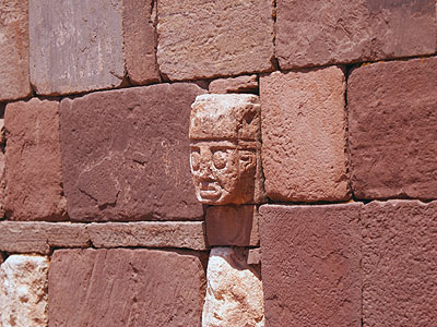 Zvláštností toho chrámu jsou tyto hlavy vsazené do obvodových zdí. Podobný výjev z Tiahuanaca je populární po celé Bolívii a zdobí desítky pohlednic.