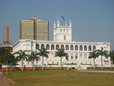 3.8.2008 - Pár bloků od našeho hotelu stojí na břehu řeky Paraguay vládní Palazio Lopez.