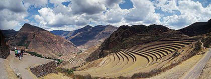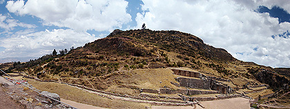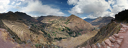265° panorama složené ze 34 fotografií zachycuje mohutné terasy Pisacu. Fotografie byly pořízeny z vyhlídkové plošiny přibližně uprostřed poznávací trasy.