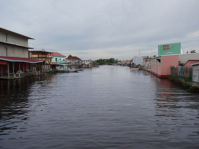 Z mostu se otevírá výhled na zátoku Haulover, která rozděluje Belize City na dvě části. Její břeh hustě lemují dřevěné baráčky.